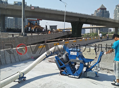 2、基(jī)層處理設備采用具備(bèi)同步清除浮漿及(jí)吸塵功能的設備、帶有驅動行走係統(tǒng)的(de)自循環回收(shōu)的拋丸設備(bèi)來進行橋麵混凝土基層處理(lǐ)。